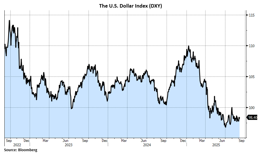Inflation has remained above the Federal Reserve’s 2% target, with last week’s reading of PCE inflation coming in at 2.6%. The continued pressure on inflation and inflation expectations from tariffs and dollar depreciation put the Federal Open Market Committee (FOMC) in the unenviable position of trying to weigh rising inflation against a weakening labor market. While Fed Chair Jerome Powell opened the door to a September cut in his remarks at Jackson Hole, market participants may have gotten carried away with the messaging as there are now over four rate cuts priced in by next June. This rate path neglects any inflationary impulses from tariffs, or any expansion of economic growth.